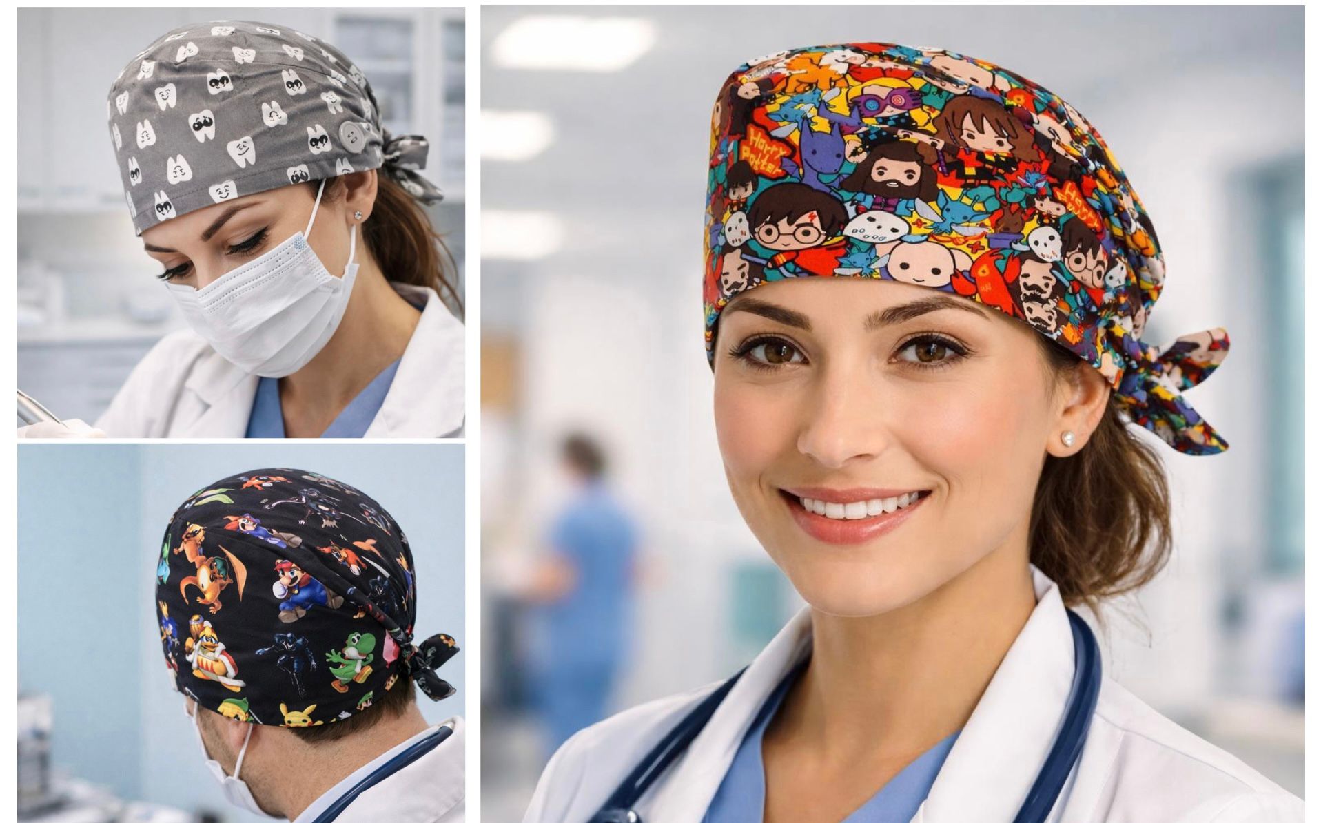 Gorros de quirófano con divertidos estampados, ideales para cualquier profesional que quiera...