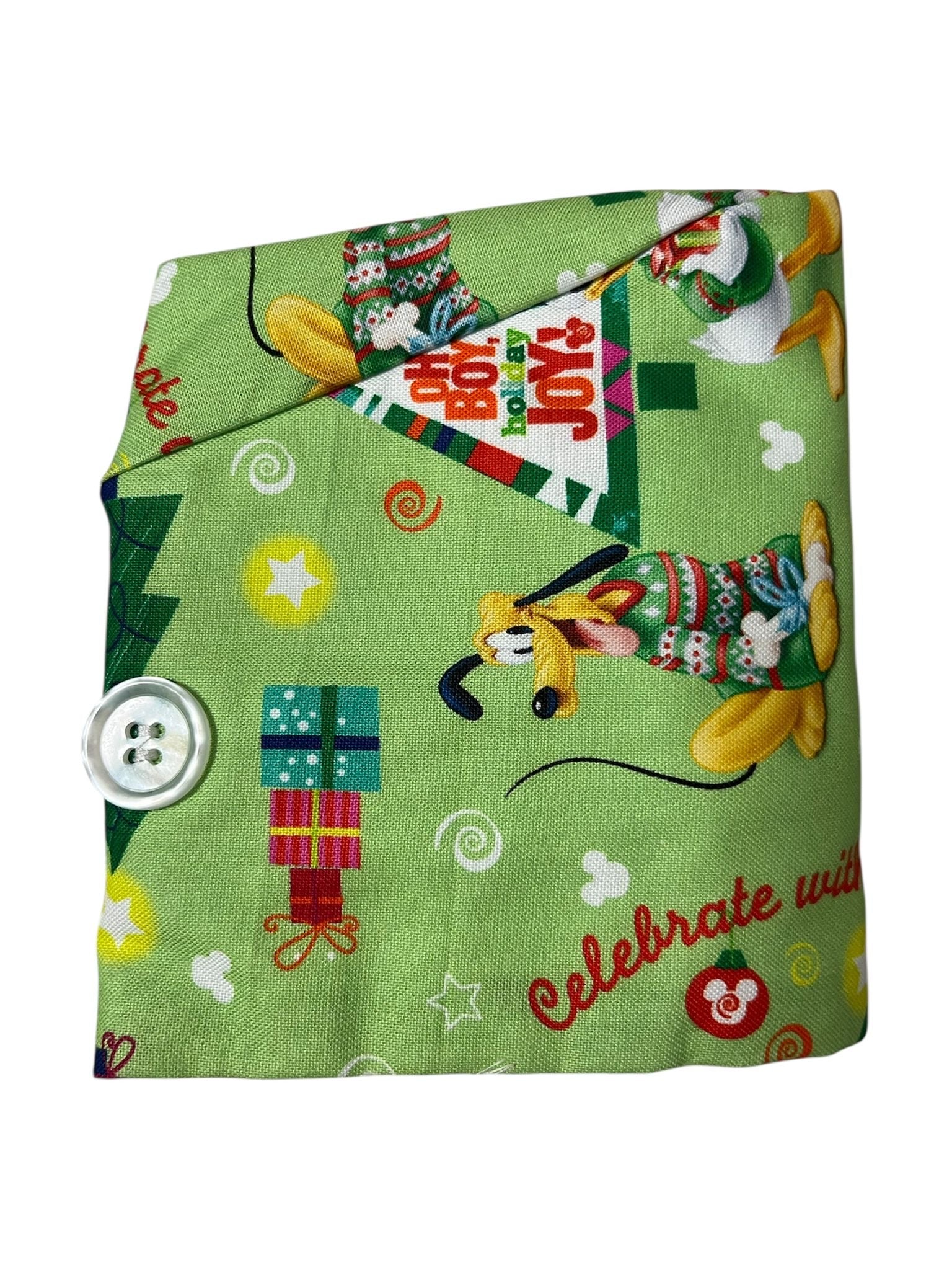 Gorro Quirúrgico de Navidad: con diseño encantador de los personajes más famosos de Disney (Mickey, Donald, Pluto y Goofy navideños) en un fondo verde. Talla única.